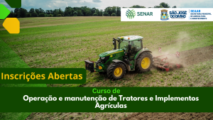 Estão abertas as inscrições para o Curso de Operação e Manutenção de Tratores e Implementos Agrícolas, realizado em parceria com o SENAR. As inscrições acontecem na Secretaria Municipal de Agricultura, localizada no centro de São José do Divino, próximo à Prefeitura. O curso é voltado à capacitação técnica de trabalhadores e produtores do meio rural.