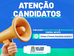 A Prefeitura Municipal de São José do Divino informa que foi publicado o Decreto Municipal nº 010, de 20 de fevereiro de 2026, que homologa o Resultado Final do Teste Seletivo nº 001/2026, realizado para contratação de pessoal por tempo determinado, conforme previsto no edital. O Decreto confirma a regularidade de todas as etapas do processo seletivo, […]