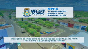 A Secretaria Municipal de Esportes informa que estão abertas as inscrições para as competições esportivas do XXXIV Aniversário de Emancipação Política de São José do Divino. Interessados devem entrar em contato pelo número (86) 98887-2066.