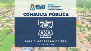 A Prefeitura de São José do Divino realizará, no dia 09 de março de 2026, uma Audiência Pública para apresentação do Relatório de Gestão Consolidado (RGC) referente ao exercício de 2025. O encontro será realizado no auditório da Secretaria Municipal de Educação e tem como objetivo apresentar à população as ações desenvolvidas pela gestão municipal e a aplicação dos recursos públicos.